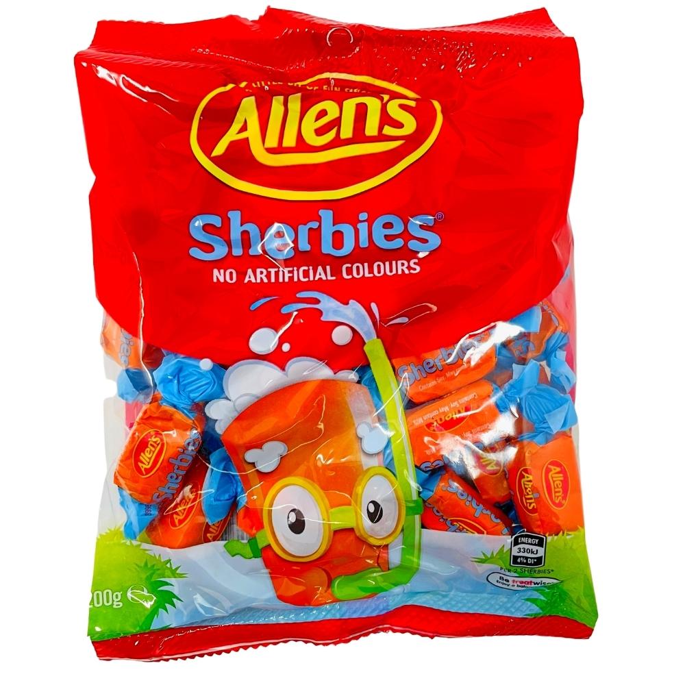 Allen's Sherbies are tangy orange chews with a fizzy sherbet surprise. Twist open the vibrant blue and orange wrapper, and enjoy every little bit of these delicious sherbet lollies!