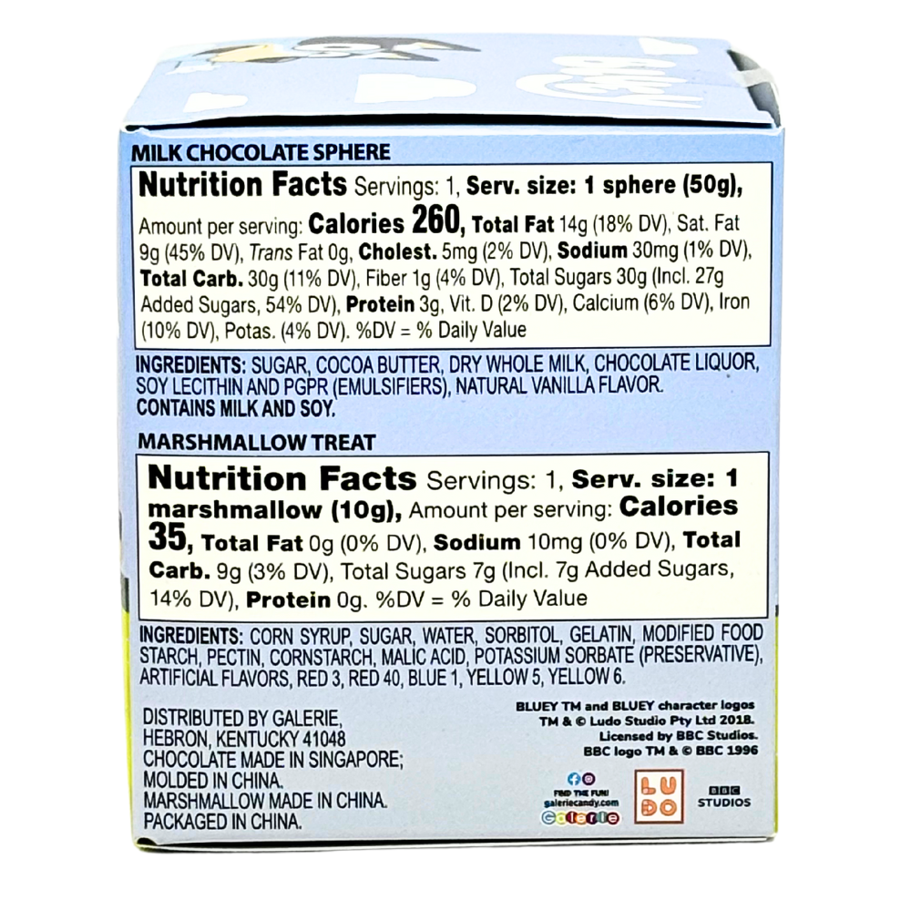 Get ready for a sweet surprise with Bluey Chocolate Ball! This delicious treat boasts a creamy, melting milk chocolate and marshmallow. Indulge in this 60g ball of deliciousness and enjoy its gooey goodness.