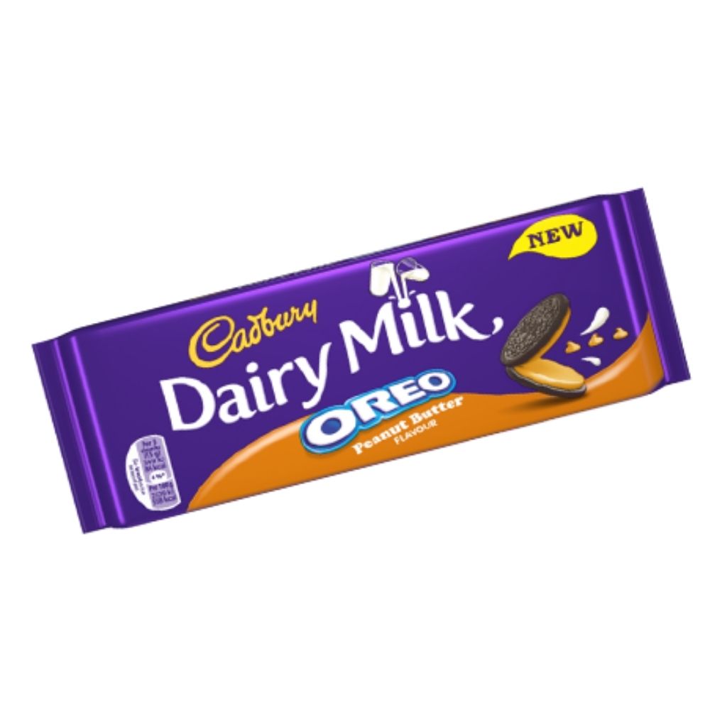 Delicious Cadbury Dairy Milk milk chocolate + creamy peanut butter flavour filling and crunchy, munchy pieces of Oreo biscuit - the perfect match!