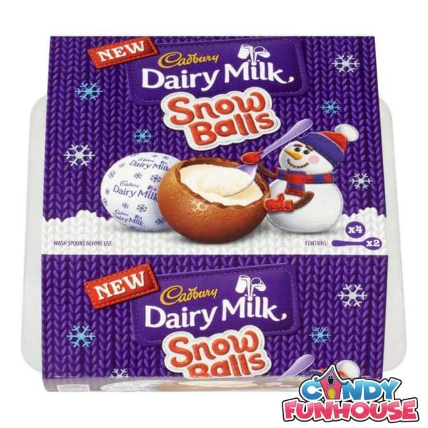 Cadbury Dairy Milk Snow Balls are Vanilla Mousse in a delicious milk chocolate shell. Includes 4 foil wrapped Snow Balls and 2 spoons! An original and delicious Christmas gift idea.