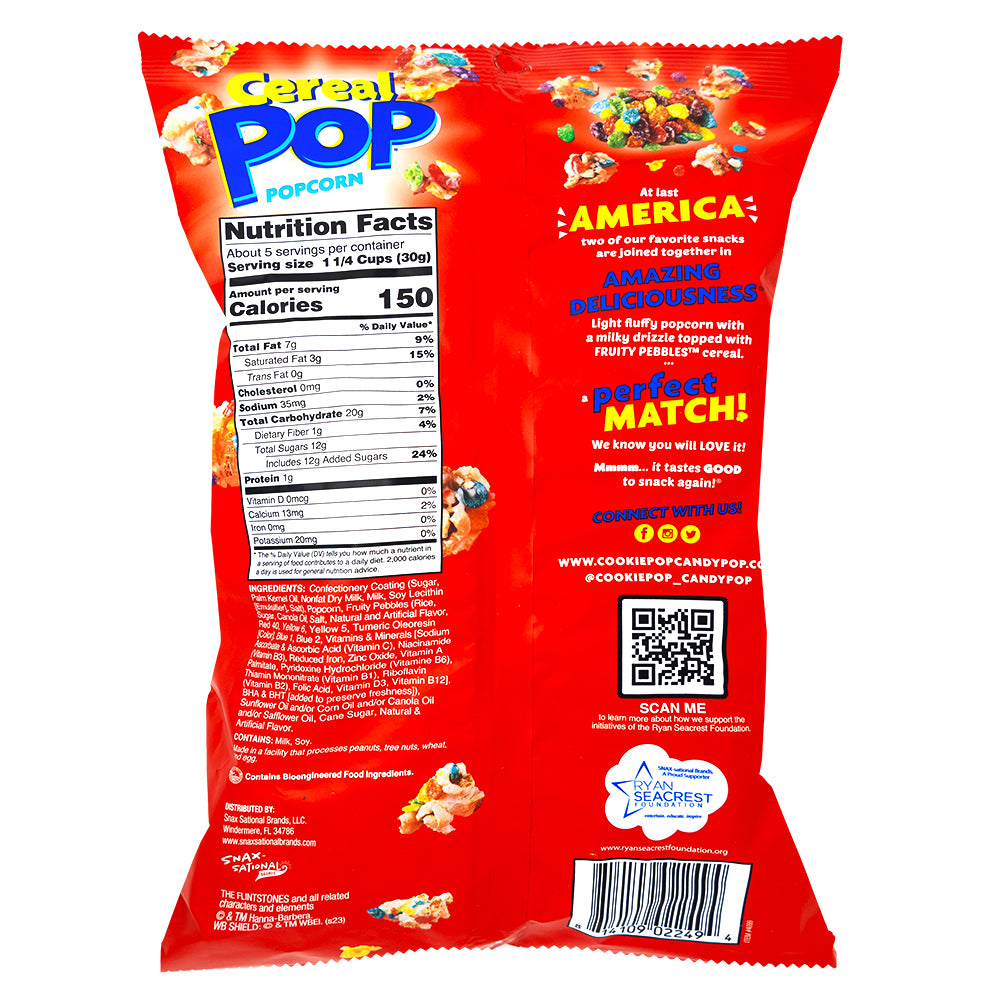 Who says cereal’s just for mornings? Cereal Pop Fruity Pebbles Popcorn brings the rainbow fun of Fruity Pebbles to a light, crunchy popcorn base for a sweet and fruity snack that hits all the right notes. Each 5.25oz bag is bursting with color and flavor—perfect for parties, movie nights, or whenever you’re craving a playful twist on your go-to snack.