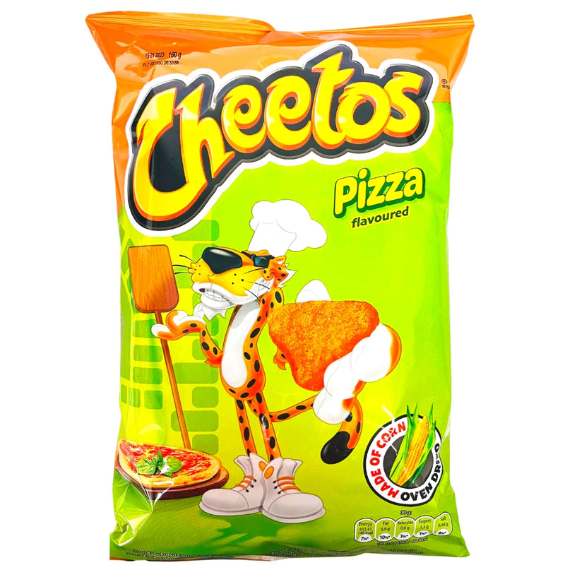 Who doesn't love pizza? Indulge on that cheesy goodness with Cheetos Pizza, brand new international Cheetos! These chips come in a pizza slice shape and are a delicious cheesy pizza flavour. Cheetos and pizza, can you name a better combination?