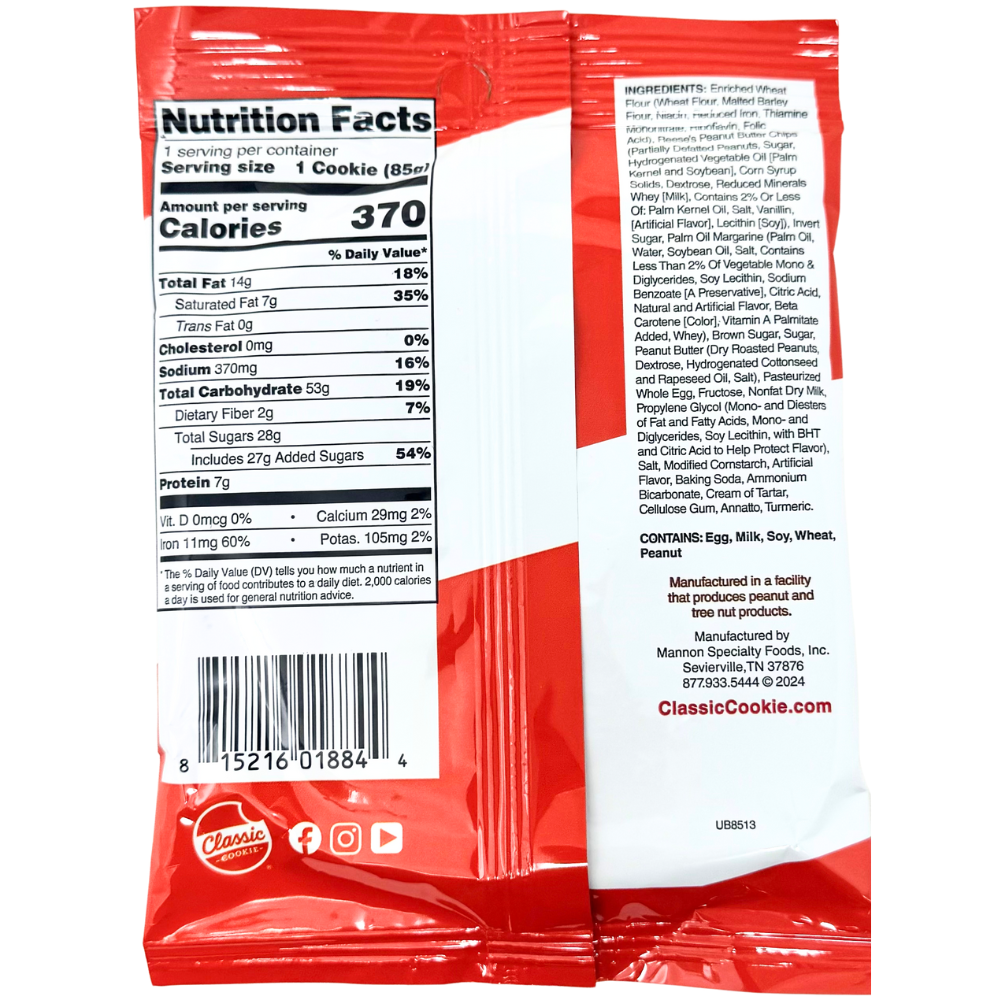 This cookie has the most perfect soft and tender texture and is filled with the delicious taste of Reese's Peanut Butter chips! Come individually wrapped making it an easy and convenient snack for on the go!