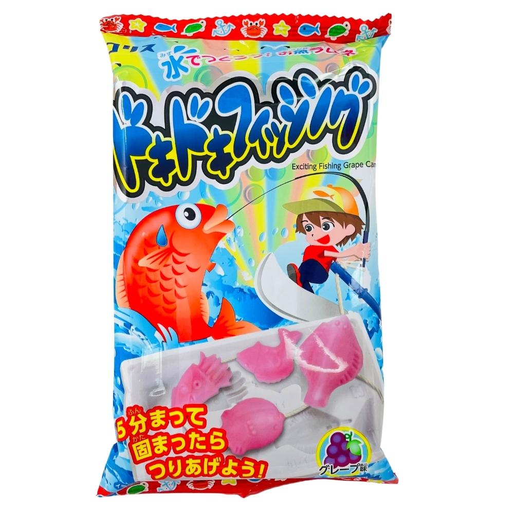 The DIY Kit Doki Doki Fishing Candy is a do-it-yourself candy kit that comes with sea creature moulds and a special grape powder that is mixed with water to create your very own candy!