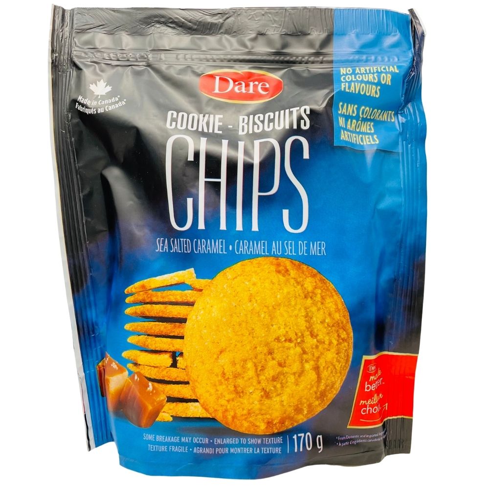 Crispy chip texture meets delectable cookie flavour in each bag of Dare Cookie Chips. What better way to enjoy them than with the taste of Sea Salted Caramel? A treat so buttery and delicious, they'll prove that there's no better combination than smooth caramel and flakes of savoury sea salt. These irresistible cookies come in a resealable bag, so you can (attempt to) put them down and keep them fresh for later.