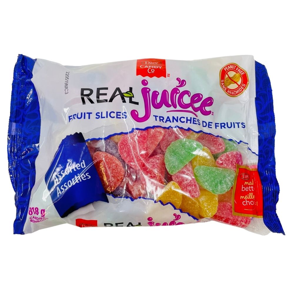 Bursting with tangy fruit flavours, Dare Real Juicee Fruit Slices is sure to delight your tastebuds. You know these sour candies are the best around because they are made better by the legendary Dare Candy. Dare has been delighting candy lovers since 1892.