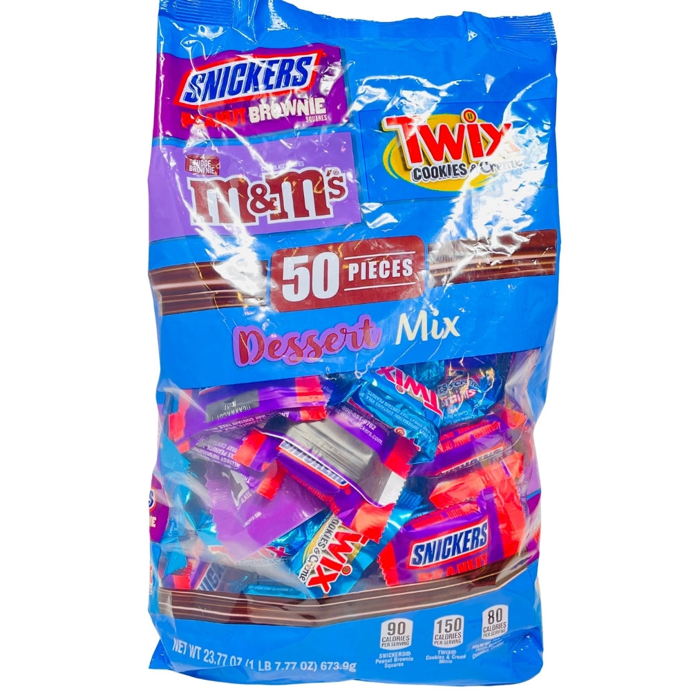 Inside this filling and delicious dessert mix contains the best dessert candy you will ever taste in bite-sized form! M&M's Fudge Brownie, Snickers Peanut Brownie, & Twix Cookies and Cream are here to replace any other dessert plans you had! Pop open this bag and pour it into a bowl, leave it on your counter for yourself or hand it out on Halloween!