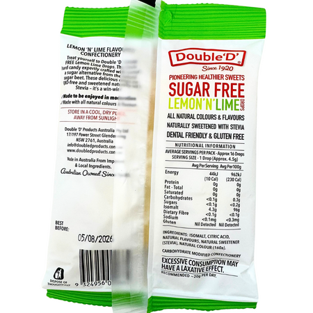 Double 'D' Sugar Free Lemon 'N' Lime Drops (Australia) - 70g