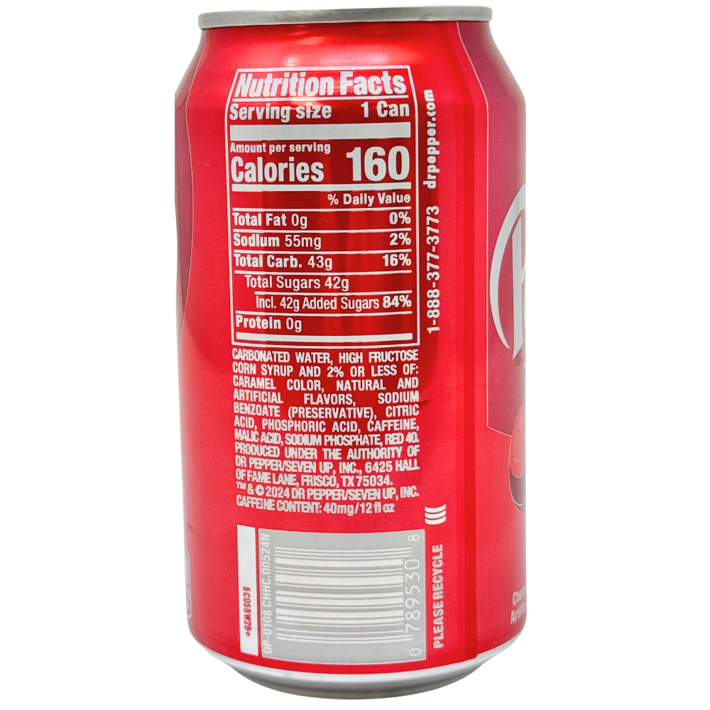 The already delicious Dr.Pepper has added a phenomenal tasting cherry twist! A blend of 23 flavours with a unique and quenching taste!