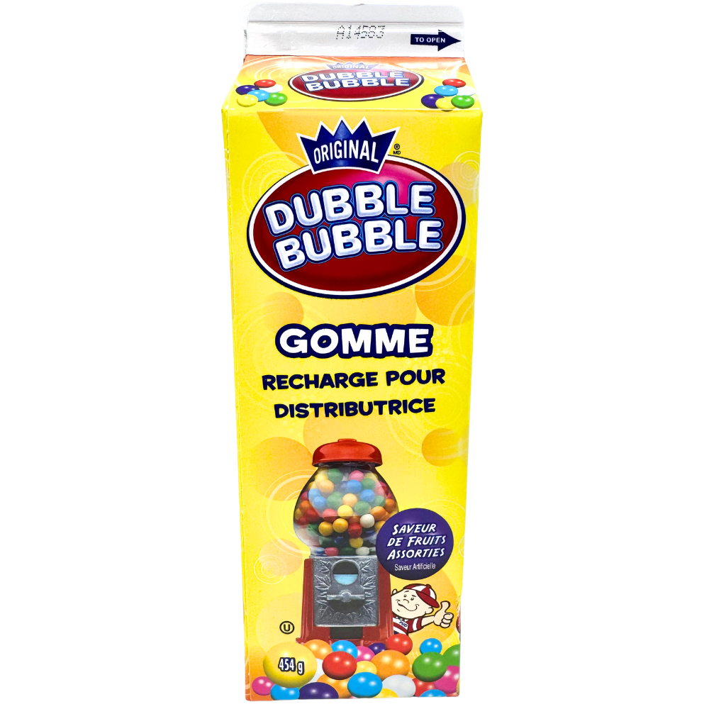 Dubble Bubble Gumballs are for home-use machines or pop the carton open and pour them straight into your mouth. This carton of yummy gumballs comes in assorted fruit flavours for your chewing enjoyment!