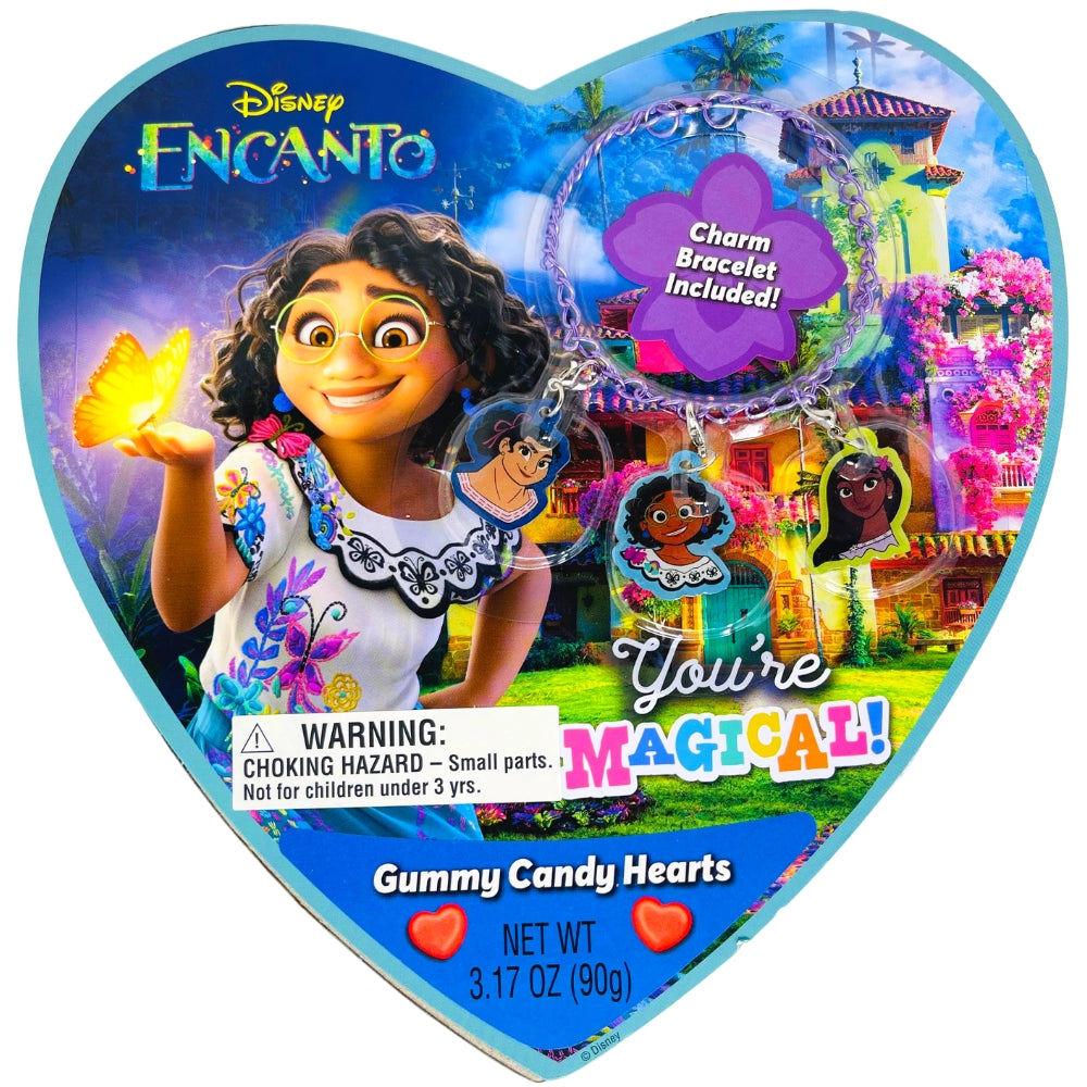 This sweet Valentine's Candy comes in a heart-shaped box, featuring some of the Encanto cast on the box.