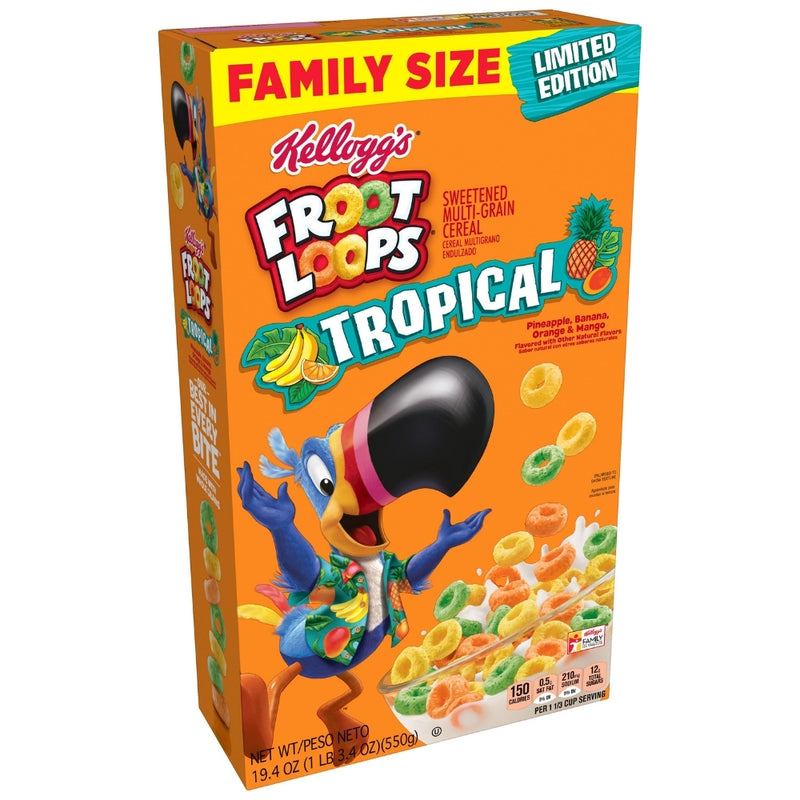 This new and limited edition cereal from Froot Loops will make Monday mornings worth waking up for! Experience a breakfast like no other with a bold blend of tropical flavours, infused in this fun, colourful cereal.