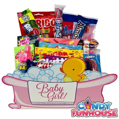 Let the guests at the Baby Girl Shower enjoy all the fresh candy from this sweet and unique Gift Basket. Have any special Gift Basket ideas? Our creative geniuses will create that custom Gift Basket that will wow them. Have Gift Baskets delivered across Canada and the USA.