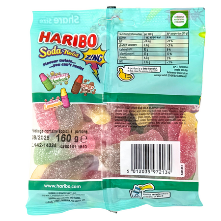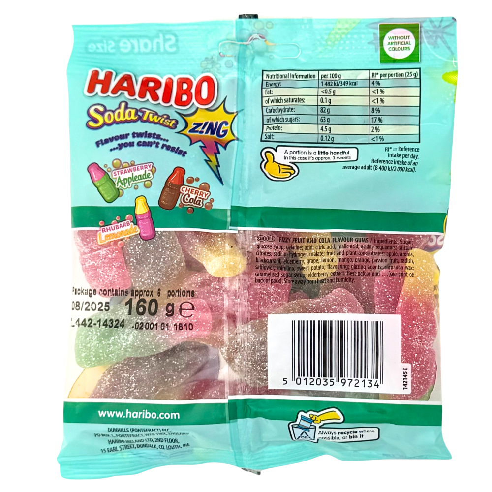 Experience a unique twist on classic soda flavors with Haribo Soda Twist (UK) - 140g. Indulge in the perfect balance of sweetness and fizziness with these delicious gummy candies. Made with high-quality ingredients, Haribo Soda Twist is the perfect treat for any occasion.