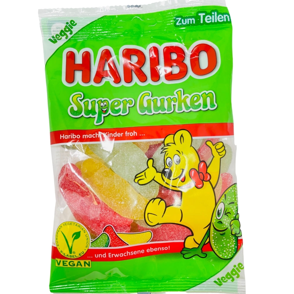 Calling all pickle lovers we have a special treat for you! Sweet tangy gummies in the shape of pickles! A dream come true we must say. Imported from Germany, using the finest ingredients Haribo didn't rely on cucumber for the flavour, but rather tangy and delicious strawberry, raspberry and lemon! These pickles are super vegan and vegetarian!