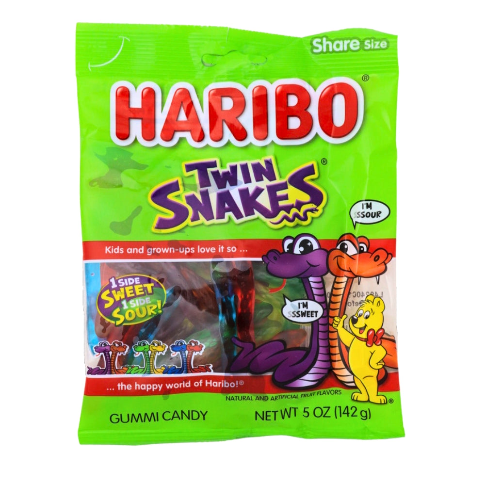 The Haribo Twin Snakes are sweet and sour, colourful and always chewy! These Haribo Gummies are just waiting to slither down your throat with their dual-headed deliciousness!