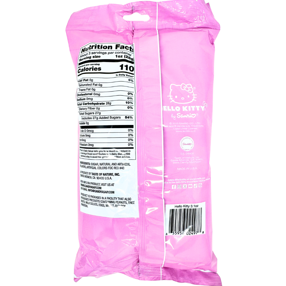 Indulge in the sweet, cloud-like goodness of Hello Kitty Cotton Candy! Bursting with cherry and strawberry flavors, this fluffy treat delivers a fruity punch in every bite. Packaged in a charming Hello Kitty-themed container, it’s as cute as it is delicious—perfect for snacking, sharing, party favors, or gifting to any Hello Kitty lover.