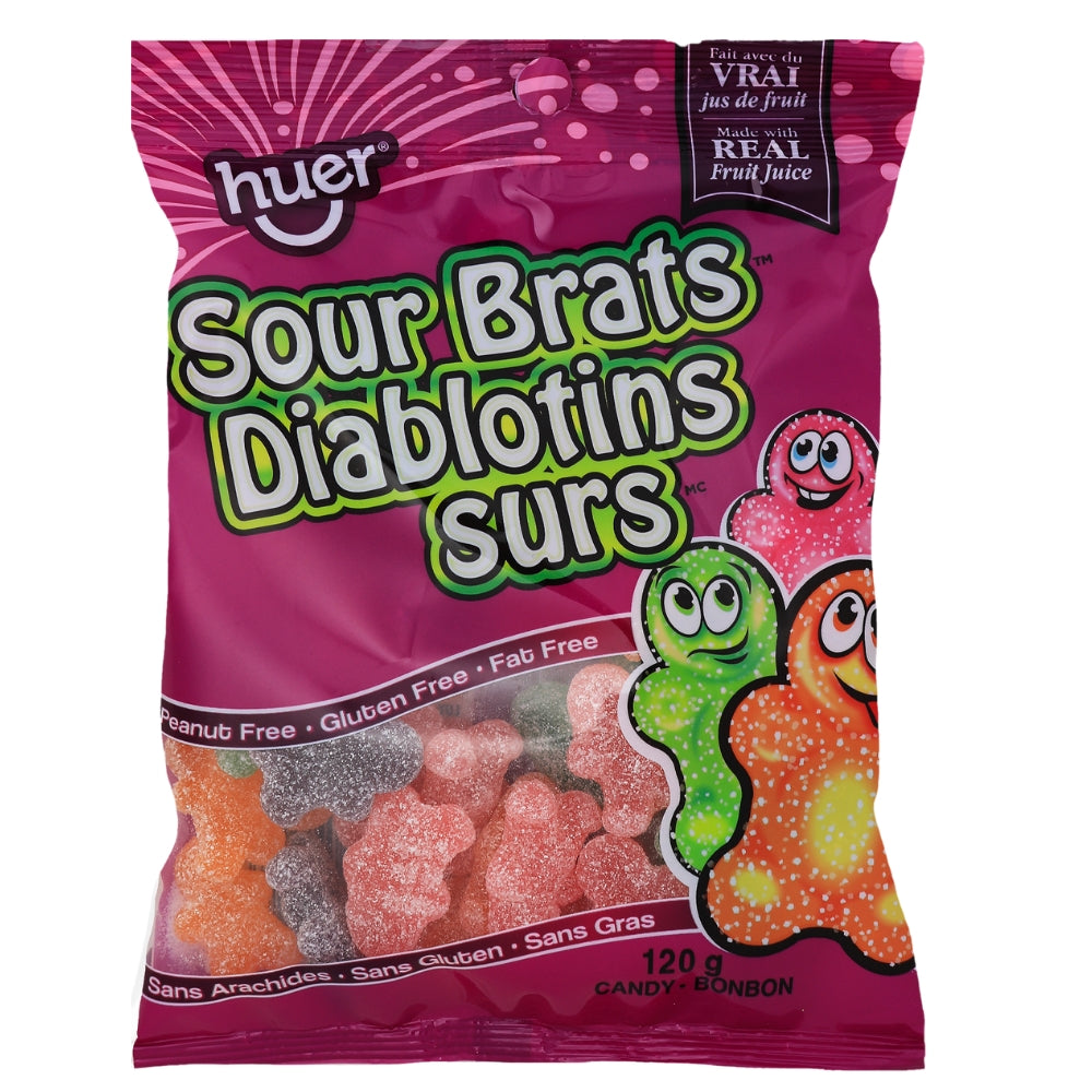 This Huer sour gummy candy packs a punch of sourness with a slight sweetness in the mix -- exactly the flavour you would expect from a brat!