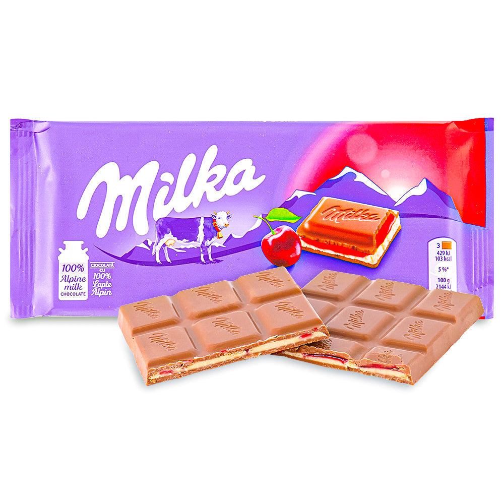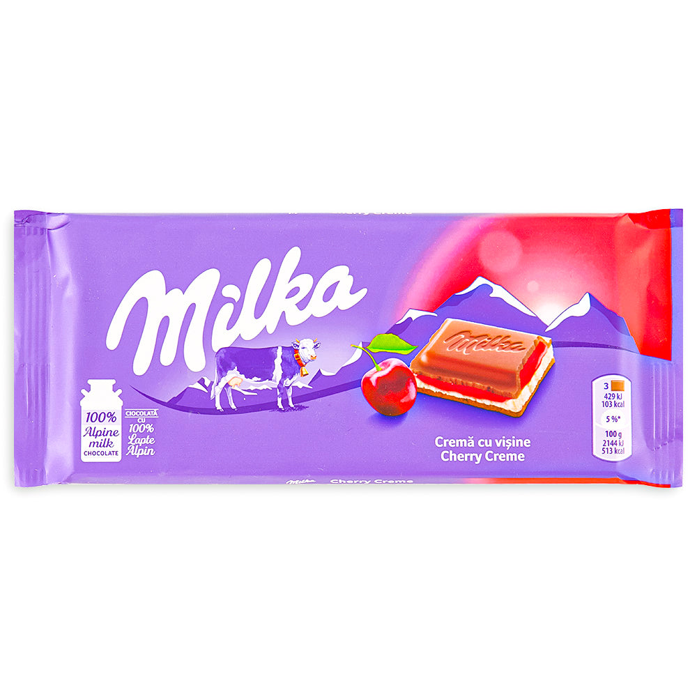 Give yourself the ultimate "cherry on top" with Milka Cherry Creme Chocolate Bar!