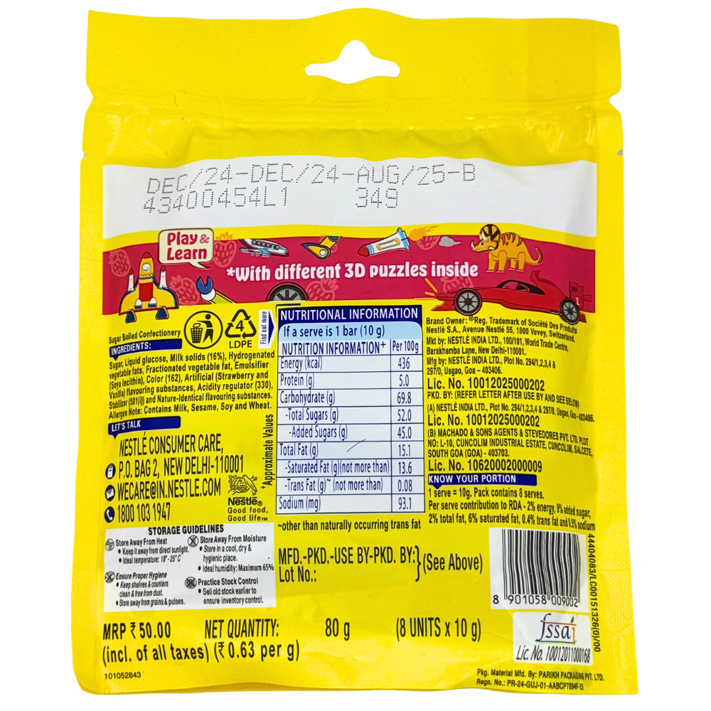 The Milkybar is an old-fashioned candy dating back to 1936! It gained worldwide status upon its release. Milkybar boasts a variety of flavours, such as chocolate, vanilla, mixed fruit, and, of course, strawberry.