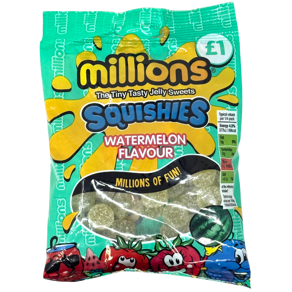Squish your way to the sweetness with the Millions Squishies Watermelon! This chewy watermelon gummy candy is simply astounding!