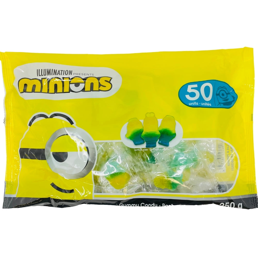 Carl, your favourite plump one-eyed minion delivered us some yummy treats! Enjoy this 50 ct bag of individually wrapped Minion shaped and coloured gummies. These gummies are so delicious you'll start talking in gibberish!