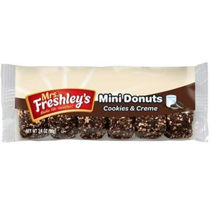 Mrs. Freshley's was introduced in 1994 and they've been making crave-worthy treats ever since! This is a pack of 6 mini chocolate donuts, with a cookies & creme crumble coating to satisfy your sweet cravings.