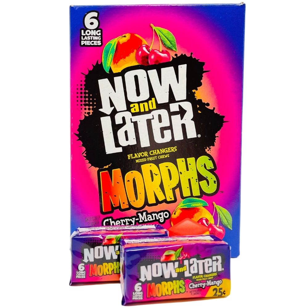 Order today and experience the flavour evolution yourself. Morphs are a delicious version of Now and Later candies that changes from one flavour to a completely new one as you chew! Featuring a favourite flavour - Cherry-Mango!