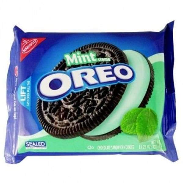 The perfect combination of chocolate and mint married into these refreshingly sweet Mint Oreos! Classic chocolate Oreos cookies smothering a fresh green mint creme!