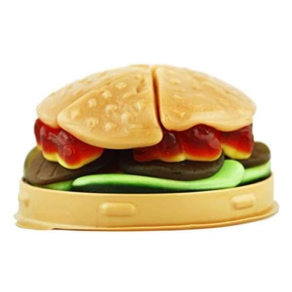 - Pre Sliced Into 6 SectionsGummy Bun Top, Pickles, "Lettuce", and Burger With Cheese Made From Gummy Bears