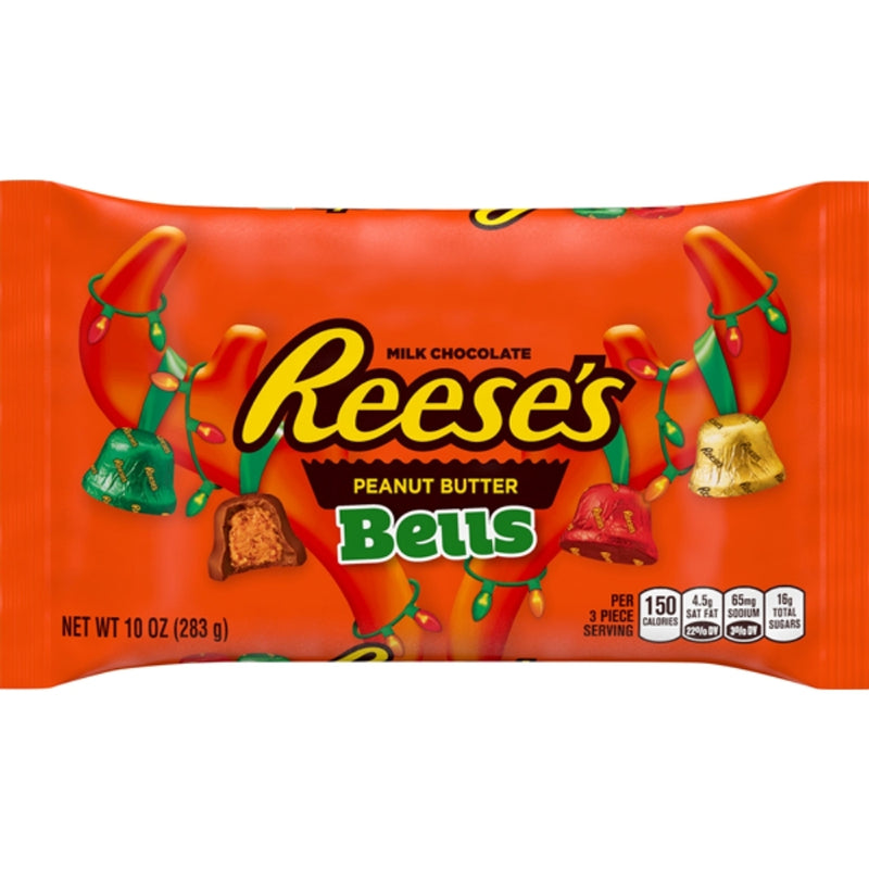 Reese's Peanut Butter Bells are a sweet alternative to Christmas ornaments. Image your Christmas tree decorated with the yummy bells...Oh Christmas tree! Actually,a better idea is to just eat them before Santa's gets them. A delicious Christmas candy that will leave you feeling cheerful. Ho! Ho! Ho!