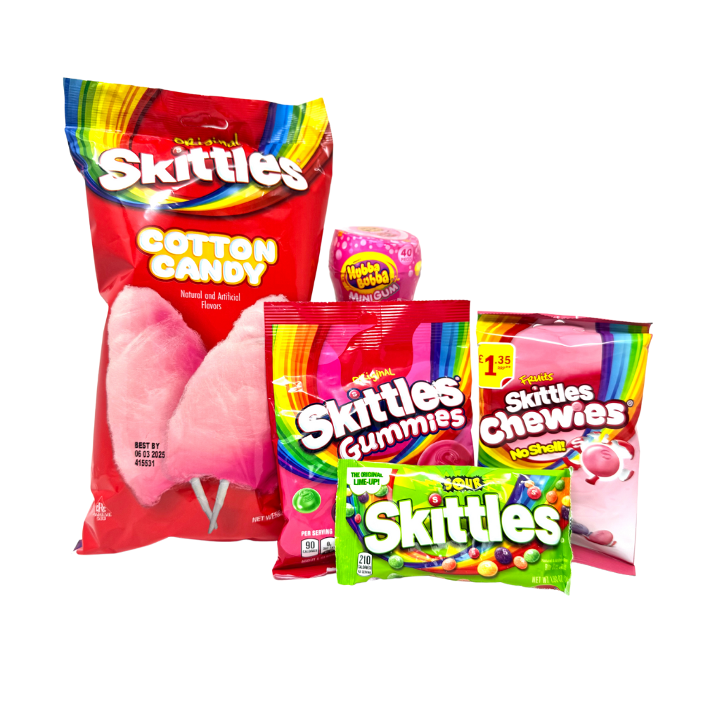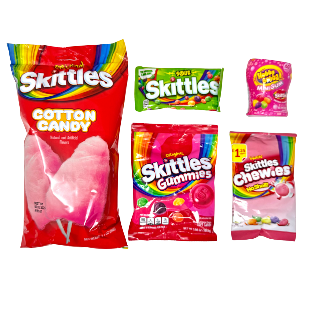 Taste the rainbow in every way! This vibrant Skittles bundle brings together bold flavours, unique textures, and international exclusives for the ultimate fruity candy experience. From gooey giants to zesty sour straws and classic chewy favourites, it’s a colourful mix perfect for sharing, gifting, or enjoying all to yourself.