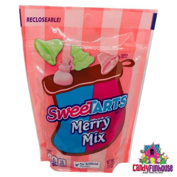 Sweetarts Merry Mix Candy come in the classic holiday colours of red and green with shapes of bells, snowmen and Christmas trees. Still the same sweet and tangy taste you expect from the Wonka Sweetarts Candy!