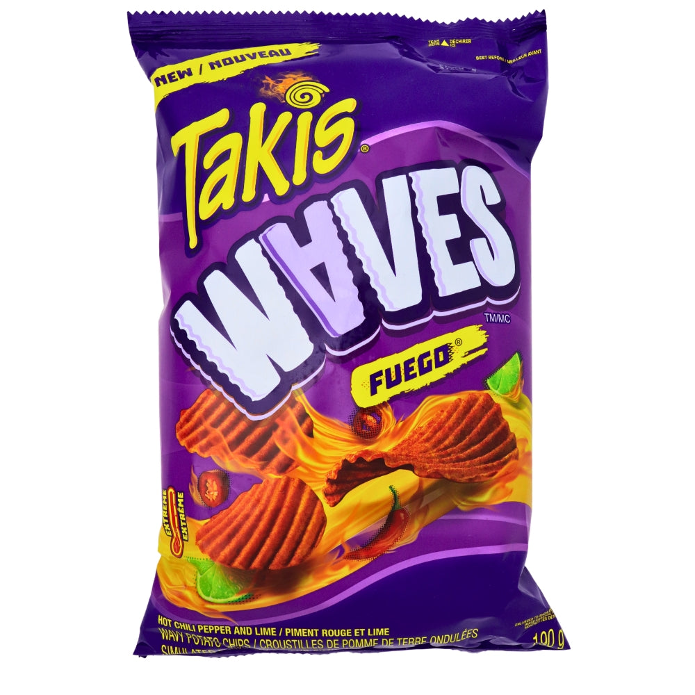 Makes waves when it comes to snack time, with the incredible new taste of Takis Waves Fuego. These extra wavy, thick-cut potato chips are ready to deliver a big hit of fantastic flavour.