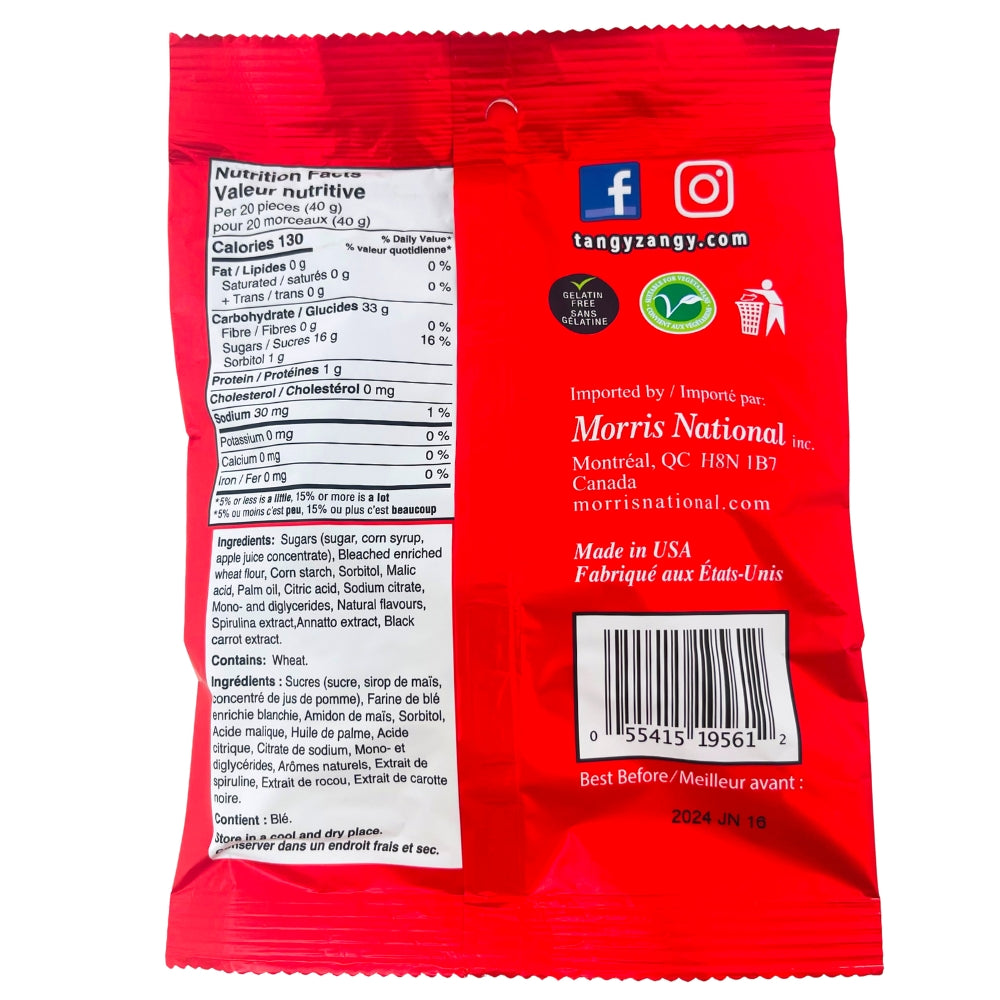 Indulge in Tangy Zangy's Sour Wild Fruit Squares. These square-shaped candies burst with a wild and untamed fruity flavour that will have your hungry tastebuds terrifically tantalized!