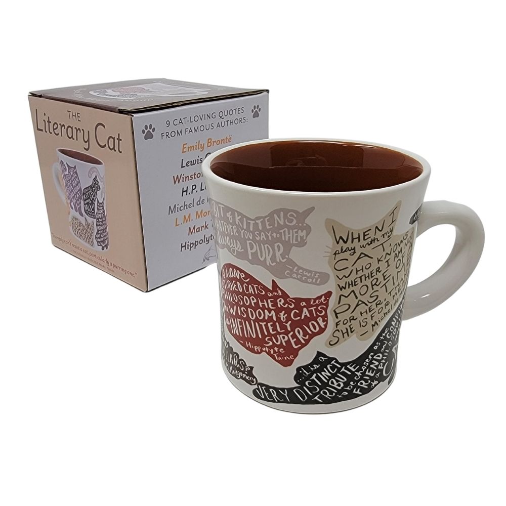 The Literary Cat Mug is a must-have in your collection! It is the perfect mug for a genuine cat enthusiast and bookworm. This calico-cat-coloured mug features not only 9 silhouettes of cats but 9 cat-loving quotes from authors you may not have known were true cat lovers! Hunker down with a book or cat and enjoy reading brilliant and amusing words from authors such as Emily Brontë, L.M. Montgomery, Winston Churchill, Mark Twain, and H.P. Lovecraft.